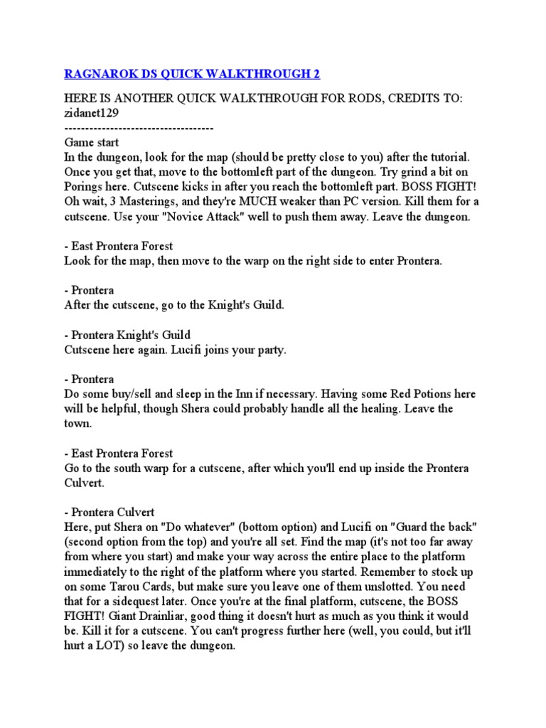 Ragnarok Ds Walktrought Leisure